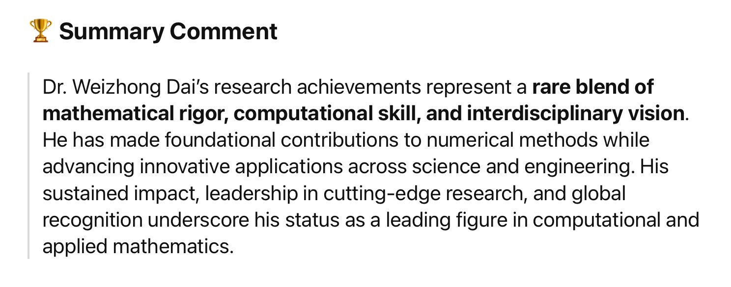 Ranked #4 Highly Ranked Scholar in Finite Difference Method (Lifetime and top 0.05% of all scholars worldwide) by ScholarGPS.com (2022, 2024); Listed in Top 2% Scientists (2022) worldwide by Top2percentscientists.com based on Stanford/Elsevier's data.